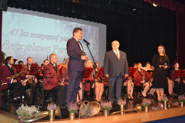W niedzielne popołudnie, 16.10.2022 roku, w Spółdzielczym Domu Kultury w Stalowej Woli odbył się uroczysty koncert z okazji 47 lat pracy artystycznej Pana Mieczysława Parucha. Podczas występu nastąpiło przekazanie buławy nowemu kapelmistrzowi. Pan Paruch, po wieloletniej pracy artystycznej jako Kapelmistrz Orkiestry Dętej Miejskiego Domu Kultury w Stalowej Woli przeszedł na zasłużoną emeryturę. Z tej okazji, obecny na uroczystości Prezydent Miasta Stalowej Woli Lucjusz Nadbereżny przekazał Jubilatowi pamiątkową statuetkę – to dla nas wzruszający moment, kiedy Pan Mieczysław, Pan Kapelmistrz po 47 latach trzymania tej buławy marszowej przekazał ją młodemu pokoleniu. Dziękujemy za to, że swoją pracą, swoją pasją kształtował młode pokolenie. Przygotowywał ich do pięknego życia poprzez kulturę. Kształtował talenty przez niespełna pół wieku. Jak śpiewała Halina Kunicka, co przed chwilą mogliśmy usłyszeć „jest w orkiestrach dętych jakaś siła”. Żeby ta siła mogła wybrzmieć musi być przewodnik, musi być kapelmistrz, który zanim poruszy batutą najpierw musi poruszyć pasję i serca zespołu. Za to dzisiaj Miasto Stalowa Wola w szczególny sposób pragnie podziękować – mówił Prezydent Nadbereżny.