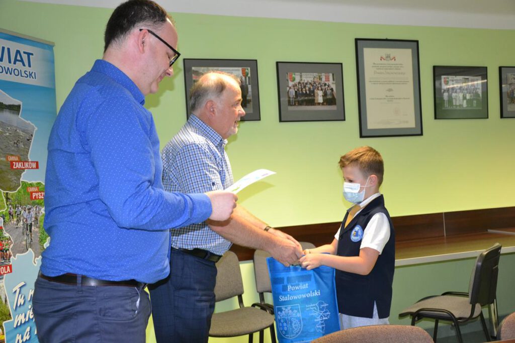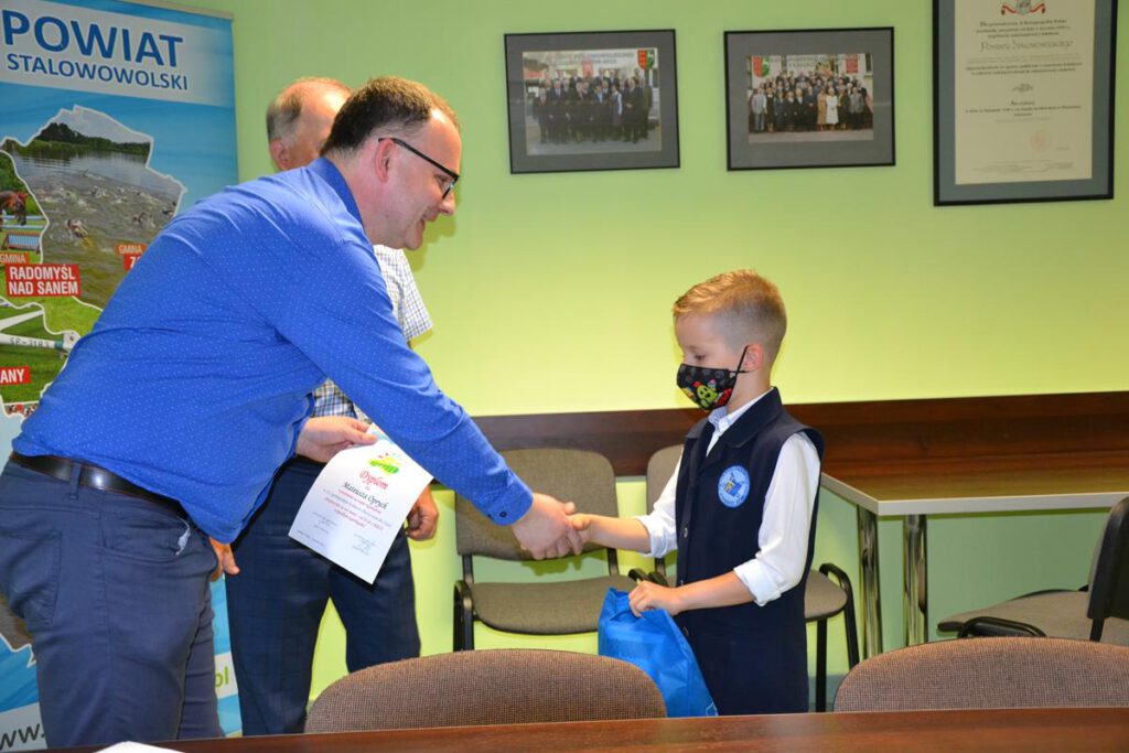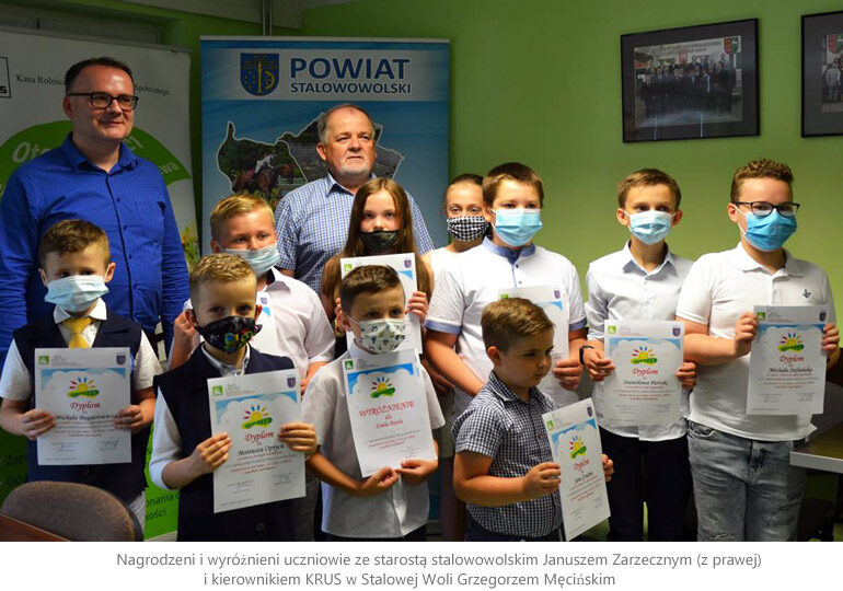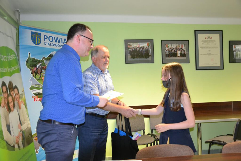 Uroczyste podsumowanie etapu powiatowego odbyło się w Starostwie Powiatowym w Stalowej Woli. Nagrody i dyplomy wręczali uczniom, a także gratulowali zwycięstwa, starosta stalowowolski Janusz Zarzeczny i kierownik Placówki Terenowej Kasy Rolniczego Ubezpieczenia Społecznego w Stalowej Woli Grzegorz Męciński.