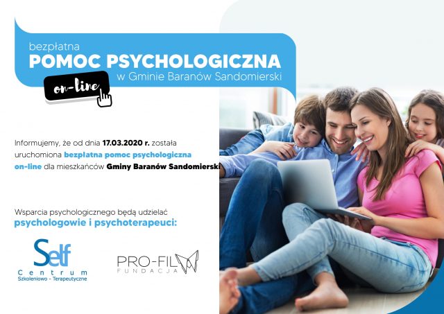 Przypominamy, że od zeszłego miesiąca na terenie Gminy Baranów Sandomierski uruchomiono bezpłatną pomoc psychologiczną dla wszystkich mieszkańców. Wsparcie psychologów i psychoterapeutów, udzielane jest za pomocą metody on-line.