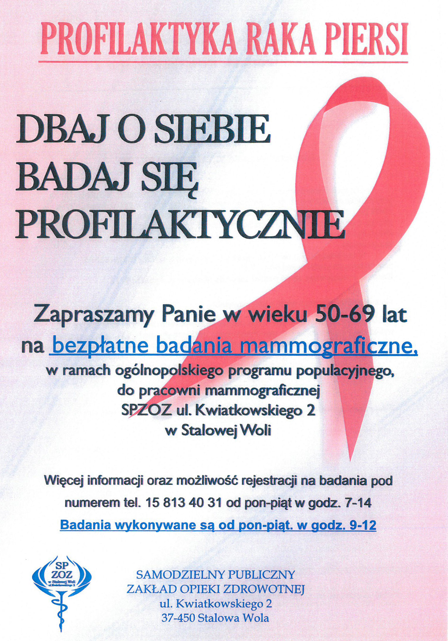 Bezpłatne badania mammograficzne w Stalowej Woli