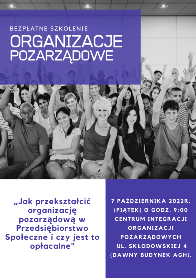 Prezydent Miasta Mielca serdecznie zaprasza przedstawicieli organizacji pozarządowych działających na terenie miasta Mielca, na bezpłatne szkolenie pt. „Jak przekształcić organizację pozarządową w Przedsiębiorstwo Społeczne i czy jest to opłacalne ?”. Szkolenie odbędzie się 7 października 2022r. (piątek) o godz. 9:00, w Centrum Integracji Organizacji Pozarządowych przy ul. Skłodowskiej 4 (dawny budynek AGH).