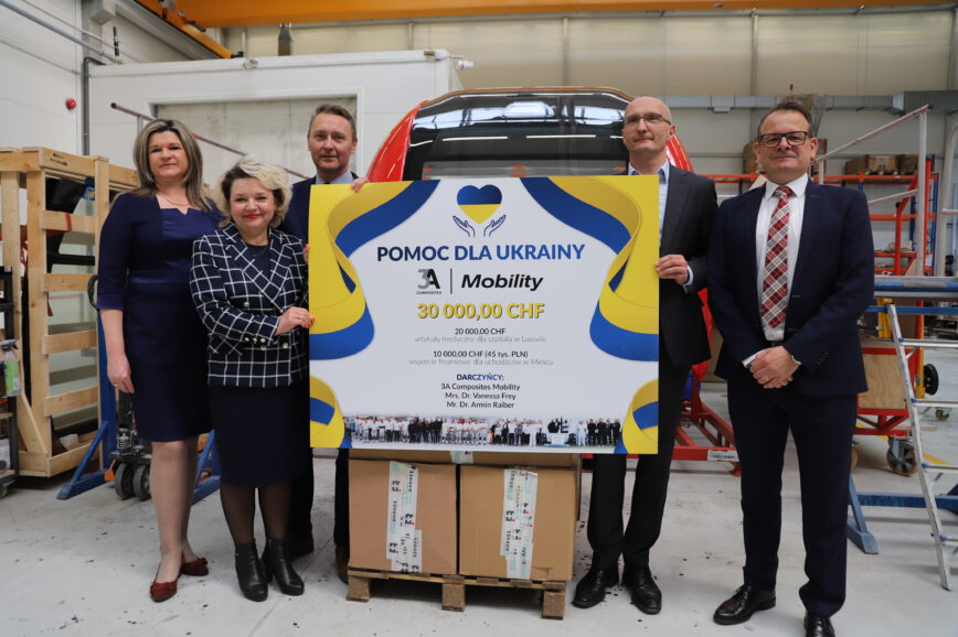 Wartość wsparcia 3A Composites Mobility to 30 tys. CHF. Składają się na to artykuły medyczne oraz wsparcie gotówkowe na zakup artykułów pierwszej potrzeby dla ukraińskich uchodźców przebywających w Mielcu.