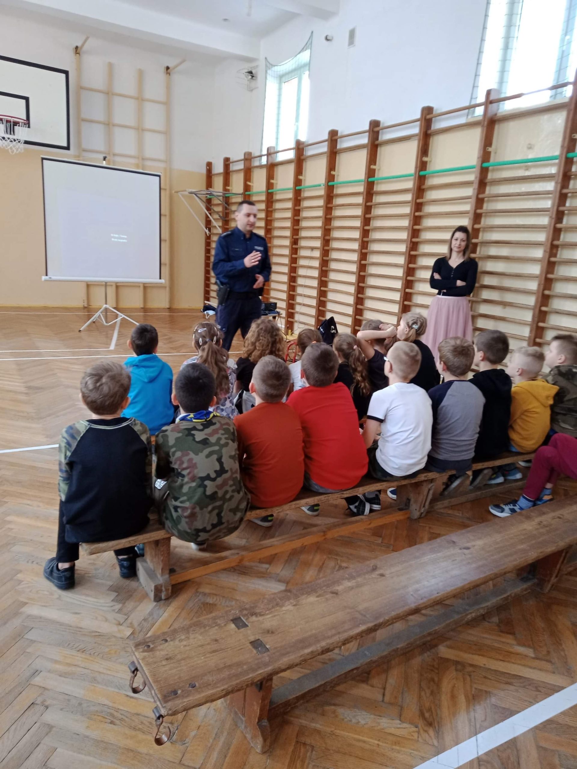 Uczniowie Szkoły Podstawowej w Kurozwękach uczestniczyli w bardzo ciekawych zajęciach profilaktycznych prowadzonych przez policjanta mł. asp. Grzegorza Pargiełę z Komendy Powiatowej Policji w Staszowie.