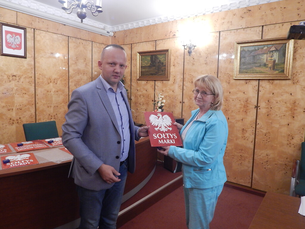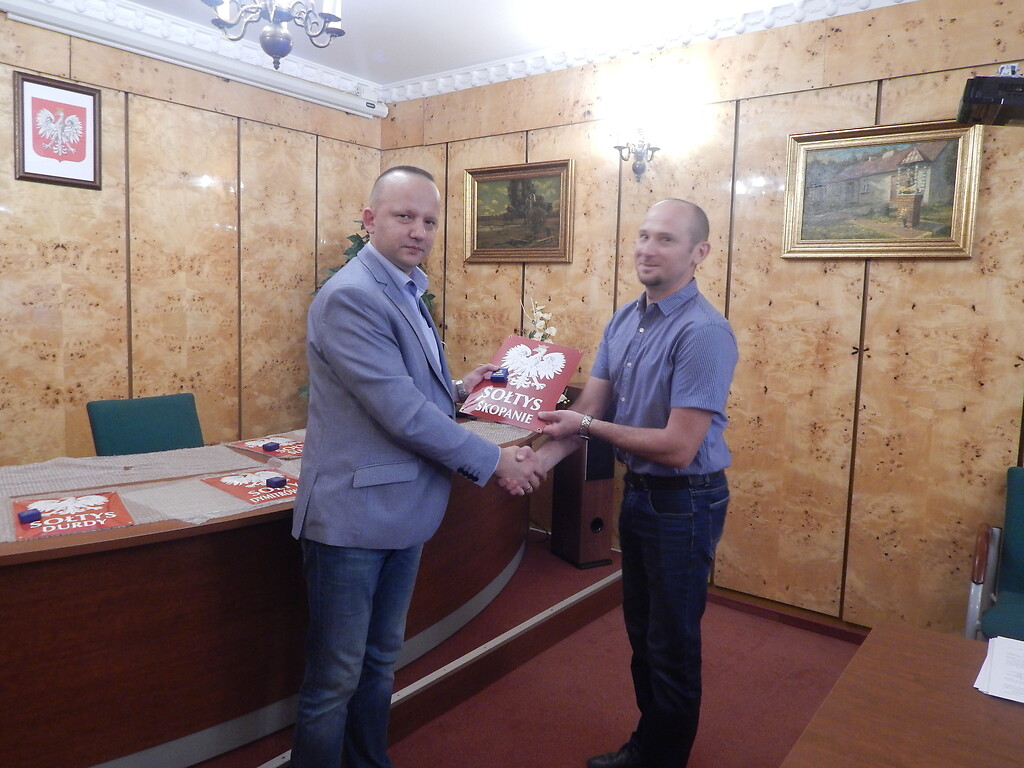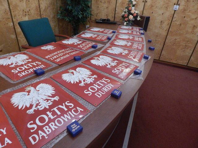 Spotkanie rozpoczęło się od wręczenia tablic urzędowych oraz pamiątkowych przypinek pins z logo Gminy Baranów Sandomierski dla każdego z Sołtysów i Przewodniczących Zarządów Osiedli.