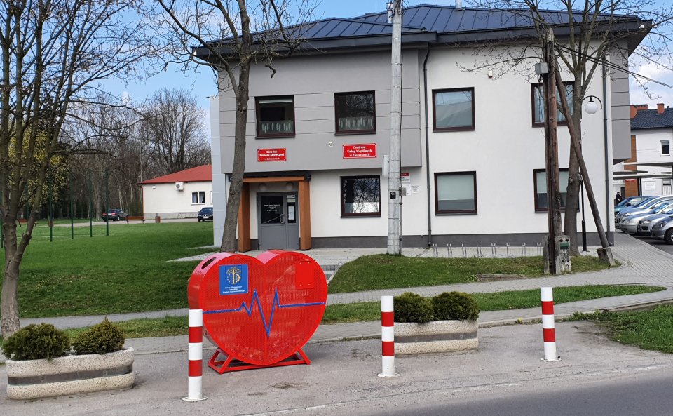 Czerwone serce, jedno z 11 sztuk zakupionych ze środków budżetu Powiatu Stalowowolskiego stanęło przed budynkiem Urzędu Gminy w Zaleszanach (drugie w pobliżu Szkoły Podstawowej w Turbi).