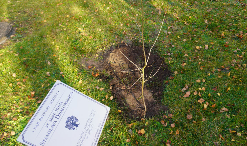 Dąb upamiętniający patrona SP 8 w Mielcu uroczyście posadzony