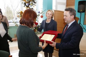 W poniedziałek, 9 grudnia, burmistrz miasta i gminy Staszów, Leszek Kopeć, zastępca burmistrza, dr Ewa Kondek oraz kierownik Urzędu Stanu Cywilnego, Mirosława Wieczorek złożyli najserdeczniejsze życzenia parom zebranym w staszowskim magistracie, podczas uroczystości Jubileuszu Diamentowych i Kamiennych Godów. Włodarze miasta wręczyli małżeństwom obchodzącym 60. rocznicę ślubu pamiątkowe diamenty, kwiaty oraz listy gratulacyjne. Para świętująca Kamienne Gody, otrzymała natomiast piękny, okolicznościowy grawerton.