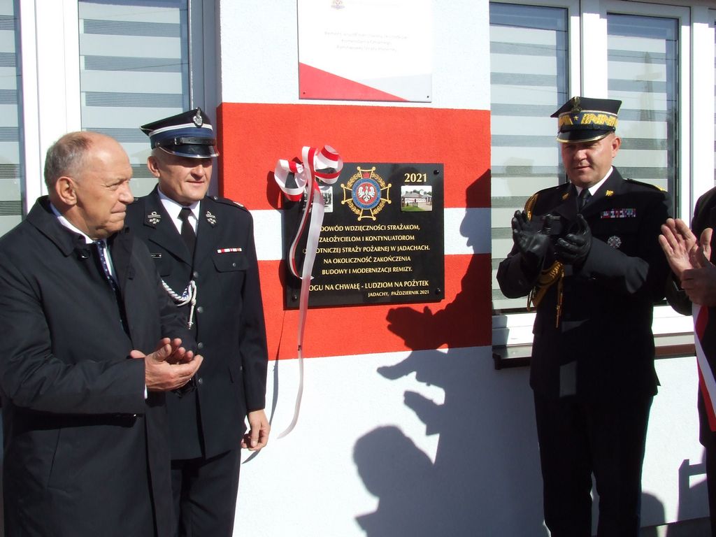 Uroczyste oddanie remizy po rozbudowie i remoncie, w minioną sobotę, 9 października, świętowali strażacy ochotnicy z Jadachów. Prócz otwarcia odnowionej remizy, w programie uroczystości znalazło się odsłonięcie pamiątkowej tablicy, odznaczenia dla strażaków i wręczenie okolicznościowych statuetek dla zaproszonych gości.