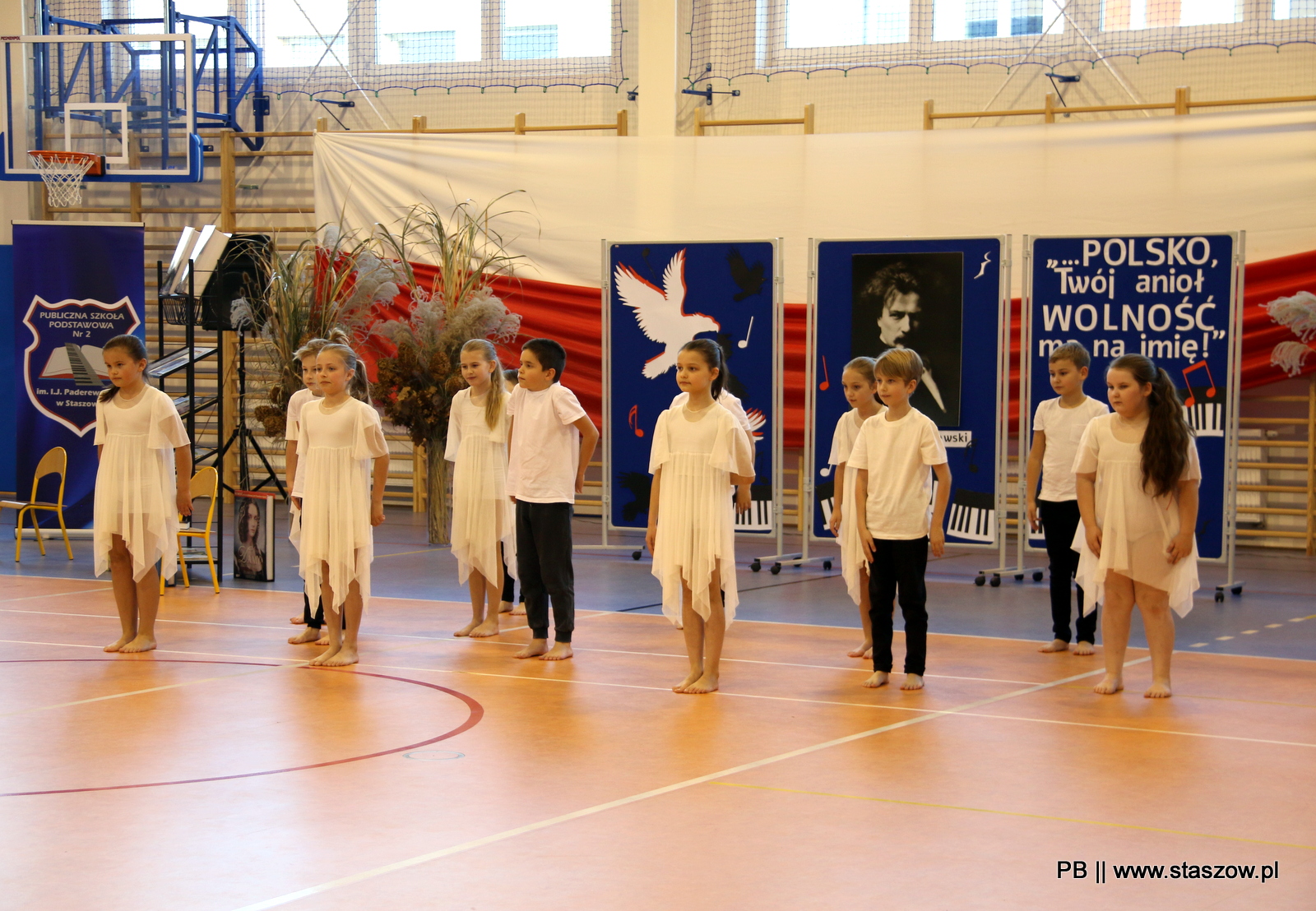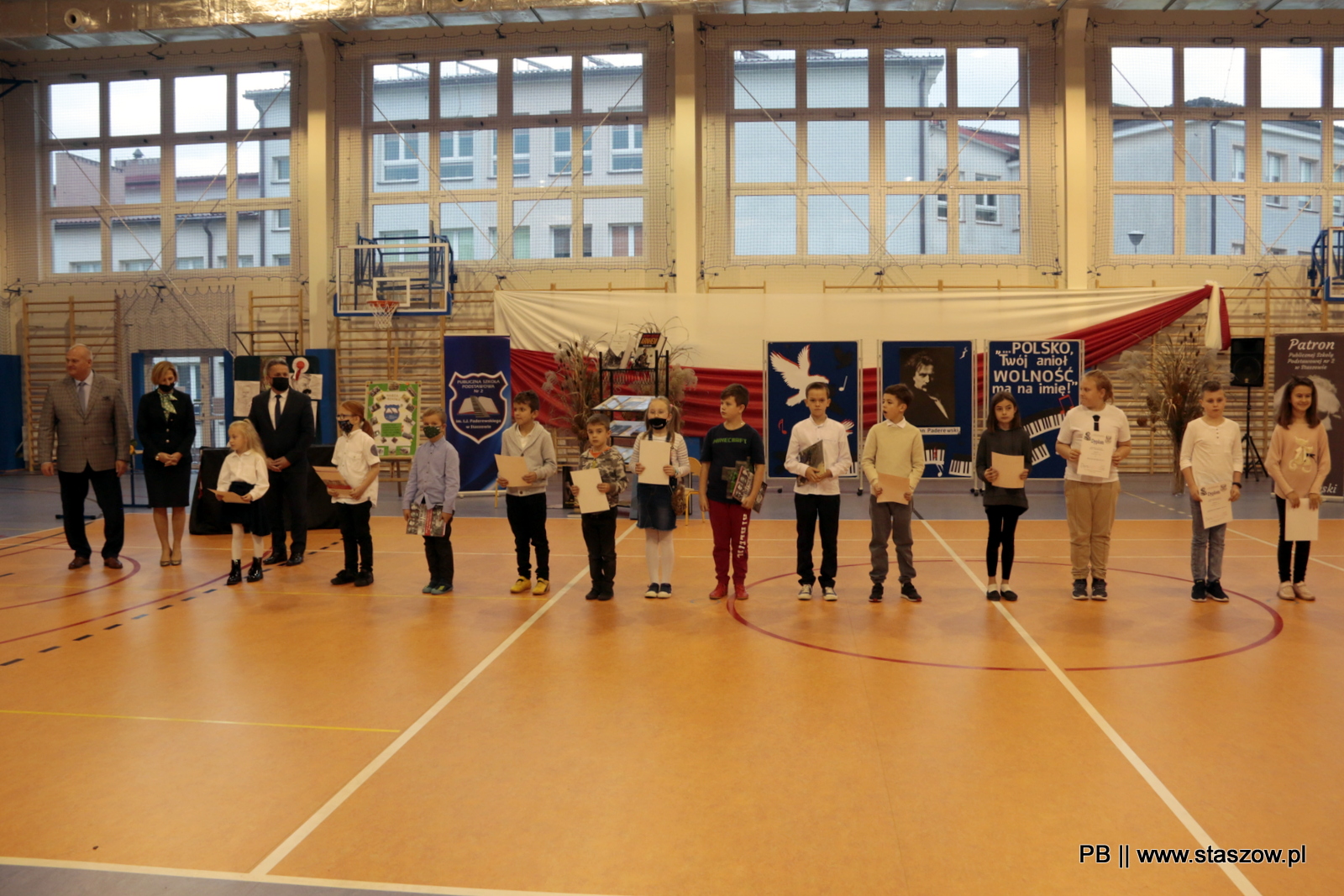Uroczyste obchody Święta Szkoły rozpoczęła akademia. Z tej okazji uczniowie przygotowali tematyczny montaż słowno-muzyczny pt. „Ojcowie Niepodległości”. Przed publicznością swoje umiejętności taneczne zaprezentowali uczniowie klasy III, przygotowani przez Małgorzatę Szmyrgałę w ramach zajęć rytmiczno-tanecznych. Występom uczniów szkoły przyglądali się Leszek Kopeć – Burmistrz Miasta i Gminy Staszów, dr Ewa Kondek – zastępca burmistrza, Ireneusz Kwiecjasz – przewodniczący Rady Miejskiej w Staszowie wraz z radnymi, a także rodzice, uczniowie i przyjaciele szkoły.