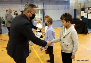 Zebrani goście złożyli na ręce dyrektora placówki życzenia, wyrazy uznania oraz symboliczne bukiety kwiatów z okazji Święta Szkoły. Leszek Kopeć – Burmistrz Miasta i Gminy Staszów zwrócił się do uczniów i pedagogów: – Uroczystość Święta Szkoły niech stanie się dla Was inspiracją do refleksji oraz okazją do tego, żebyście mogli spojrzeć na osiągnięcia ostatnich lat – tego, kiedy takie wartości jak dobro, prawda, przyjaźń i szacunek patronowały pracy edukacyjnej, zachęcały do twórczych działań oraz realizacji wytyczonych celów. Włodarz przekazał także życzenia: – W tym wyjątkowym dniu wszystkim pracownikom życzę wszelkiej pomyślności oraz niezliczonych sukcesów. Życzę Wam, aby Wasza praca była przepełniona wzajemną życzliwością i staraniem o dobro wszystkich, z którymi dzielicie ten trud i dla których ten trud poświęcacie – powiedział burmistrz Leszek Kopeć. – Uczniom życzę, aby pamiętając o dziele życia Patrona, wchodzili mądrze w dorosłe życie, a budując swój własny świat pamiętali, że są wartości, dla których warto zrezygnować z „mieć” na rzecz „być” – podsumował włodarz, przekazując dr. Dariuszowi Kubalskiemu pamiątkowy list okolicznościowy. Uroczystości zakończyła Msza Święta w kościele Ducha Świętego, która odbyła się w niedzielę, 7 listopada. Eucharystię w intencji całej społeczności Publicznej Szkoły Podstawowej nr 2 im. I. J. Paderewskiego sprawował proboszcz parafii ks. kan. Szczepan Janas.