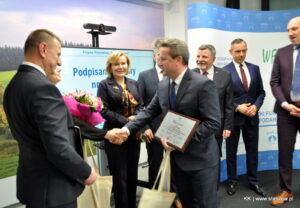 Staszowianka podpisała umowę z Ryszardem Gliwińskim, prezesem Wojewódzkiego Funduszu Ochrony Środowiska i Gospodarki Wodnej w Kielcach, w poniedziałek, 25 kwietnia, w siedzibie WFOŚiGW w Kielcach. W uroczystym podpisaniu umowy wzięli udział także: Leszek Kopeć – burmistrz miasta i gminy Staszów, Anna Krupka – Sekretarz Stanu w Ministerstwie Sportu i Turystyki, Andrzej Kryj – Poseł na Sejm RP, Krzysztof Słoń – Senator RP oraz Paweł Mirowski – wiceprezes Narodowego Funduszu Ochrony Środowiska i Gospodarki Wodnej.