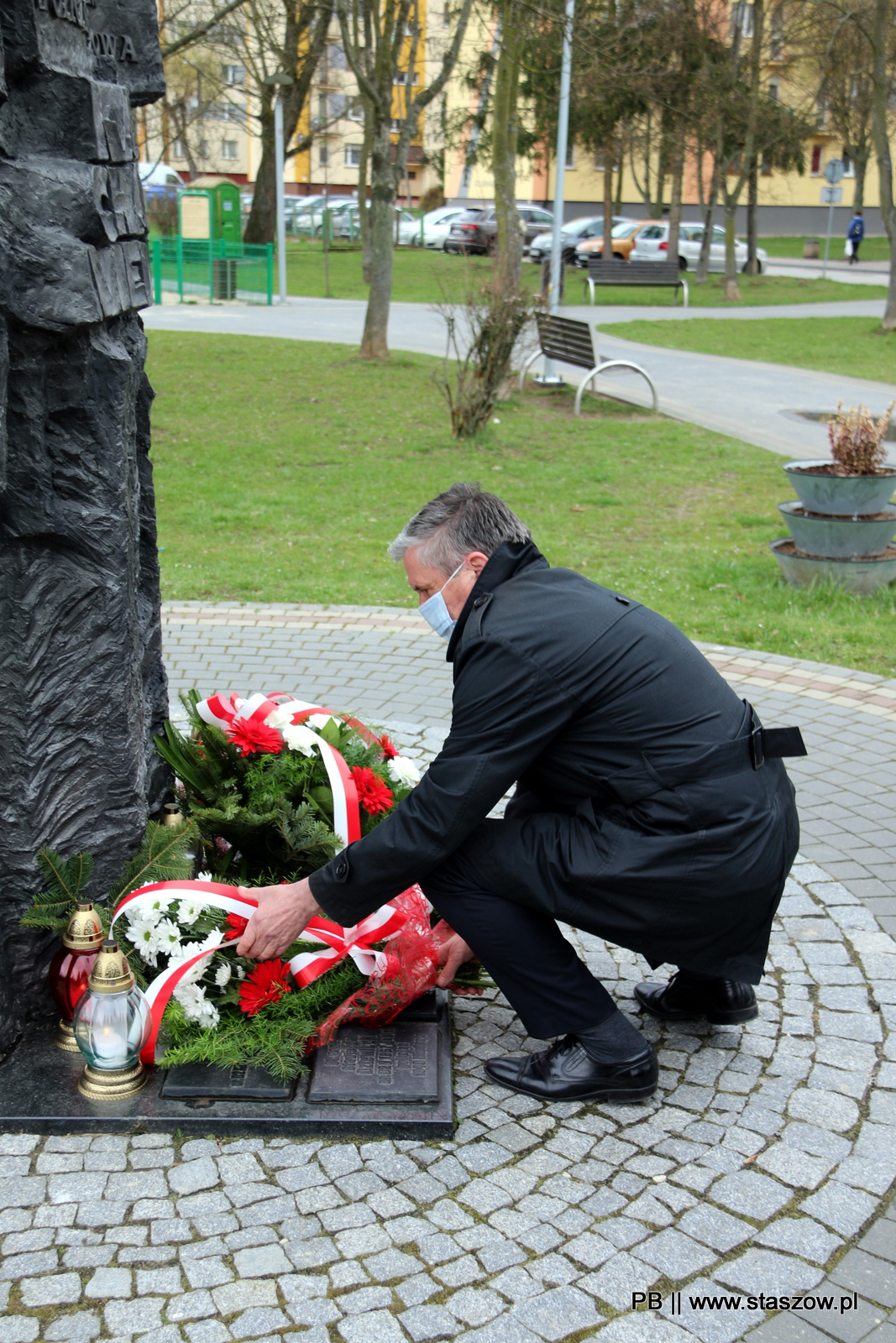 W Staszowie z powodu trwającej epidemii symbolicznie uczczono pamięć tragicznie pomordowanych, składając wieńce przy Pomniku Katyńskim w Parku im. Adama Bienia. Kwiaty złożyli Burmistrz Miasta i Gminy Staszów, Leszek Kopeć, przewodniczący Rady Miejskiej w Staszowie, Ireneusz Kwiecjasz, Sekretarz Starostwa Powiatowego w Staszowie, Jan Sikora oraz dyrektor Publicznej Szkoły Podstawowej nr 2 im. I.J. Paderewskiego w Staszowie, dr Dariusz Kubalski.