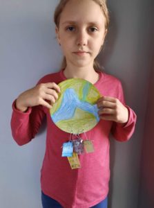 Uczniowie nie próżnowali także na zajęciach z plastyki prowadzonych przez panią Weronikę Orzechowską. IV-klasiści wykonali prace zachęcające do dbania o Ziemię pod tytułem: „Planeta Ziemi”. Ciekawe, pomysłowe i kreatywne prace uczniów wykonane dowolną techniką przedstawiały Planetę i wiszące na sznureczku jej „uzdrawiacze” – kosze na śmieci, mające przypominać, jak ważna jest segregacja odpadów.