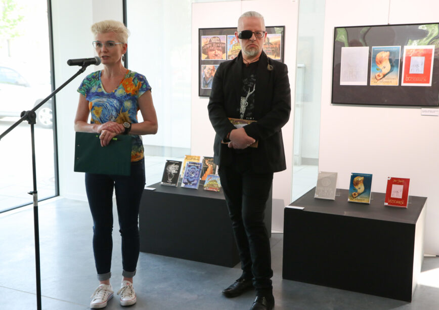 Jolanta Strycharz, zastępca dyrektora SCK ds. MBP, która poprowadziła wernisaż, wspomniała o ciągłym kontakcie artysty z Mielcem, mimo że od lat jego życie toczy się w Bydgoszczy, mówiła o współpracy z mieleckimi artystami, którym Krawiec tworzy okładki do tomików poezji i płyt. Jednym z nich jest Andrzej Ciach, który podczas wernisażu mówił o swojej wieloletniej artystycznej i prywatnej przyjaźni z Krzysztofem Krawcem.