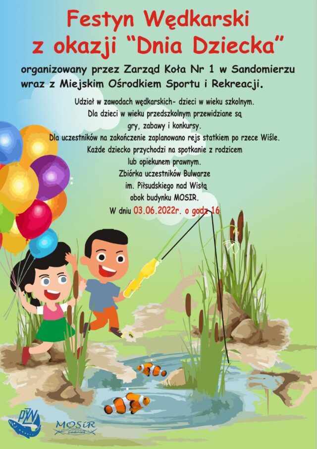 Udział w zawodach wędkarskich – dzieci w wieku szkolnym.