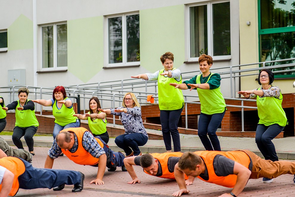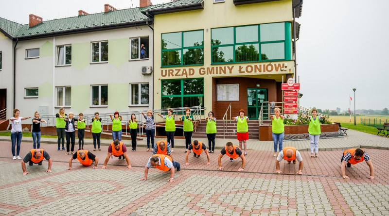 Widok pracowników Urzędu, Ośrodka Pomocy Społecznej, Gminnego Ośrodka Kultury oraz Gminnej Biblioteki Publicznej w Łoniowie, którzy robią przysiady i pompki mógł nieco zdziwić wszystkich, którzy właśnie w tym czasie przechadzali się po okolicy.