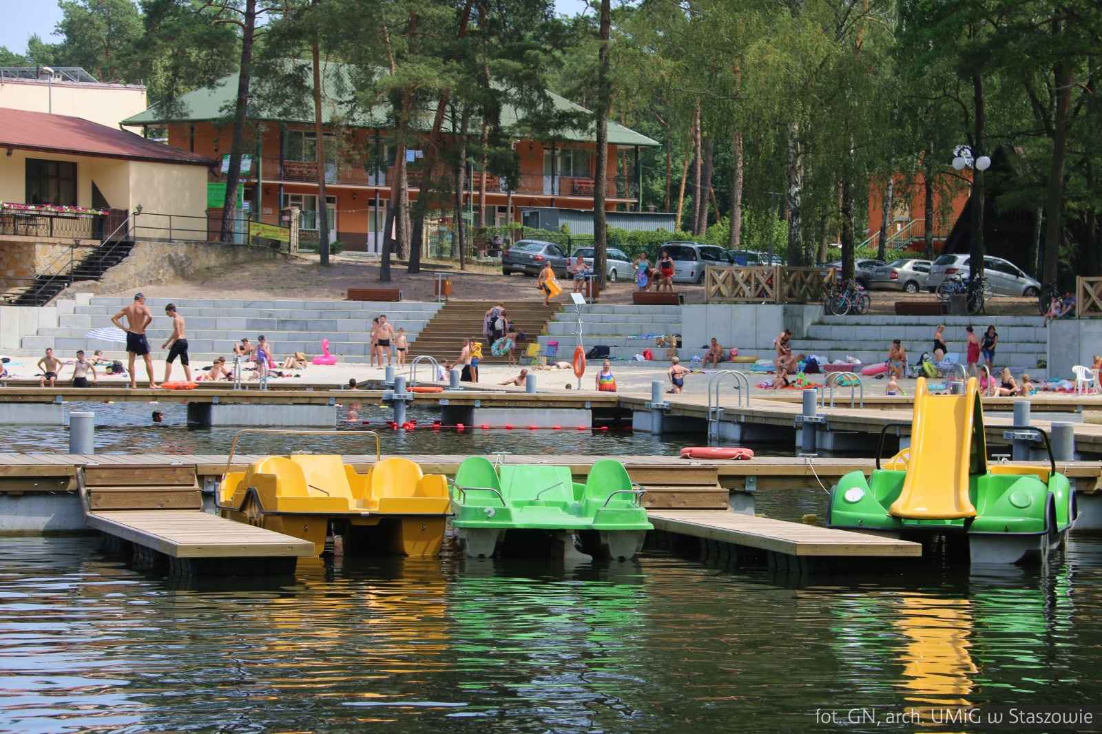 Odwiedzający Golejów już w sezonie zimowym mogli zauważyć, jak miejsce zmieniło swoje oblicze. Odmulone jeziora, zabezpieczona linia brzegowa oraz przebudowa schodów i plaży, gdzie nasypano nowy piach – to największa transformacja widoczna na pierwszy rzut oka. Na terenie kąpieliska postawiono również przebieralnie, ławki, wieżę ratowniczą, trampolinę i zjeżdżalnie dla dzieci. Pośrodku Dużego Stawu pojawiła się natomiast pływająca fontanna, która jak wyjaśnia Burmistrz Leszek Kopeć pełni dwojaką funkcję: – Po pierwsze i najważniejsze fontanna napowietrza wodę w jeziorze, a co więcej cieszy swoim wyglądem. To zupełna nowość, która dodatkowo jest podświetlana nocą. Nad bezpieczeństwem kąpiących się czuwają wyszkoleni ratownicy. Sezon kąpielowy potrwa do końca sierpnia.