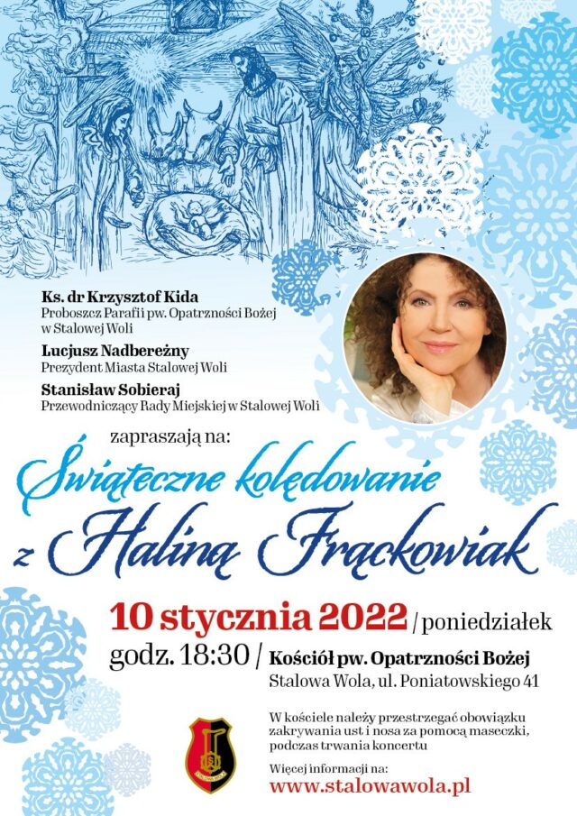 Już w najbliższy poniedziałek 10 stycznia na miłośników tradycji świątecznych oraz koneserów muzycznych czeka wielkie święto. O godzinie 18.30 w Kościele parafialnym pw. Opatrzności Bożej wystąpi Halina Frąckowiak. Artystka wykona w Stalowej Woli kolędy i pastorałki w swoich aranżacjach. Wstęp wolny.