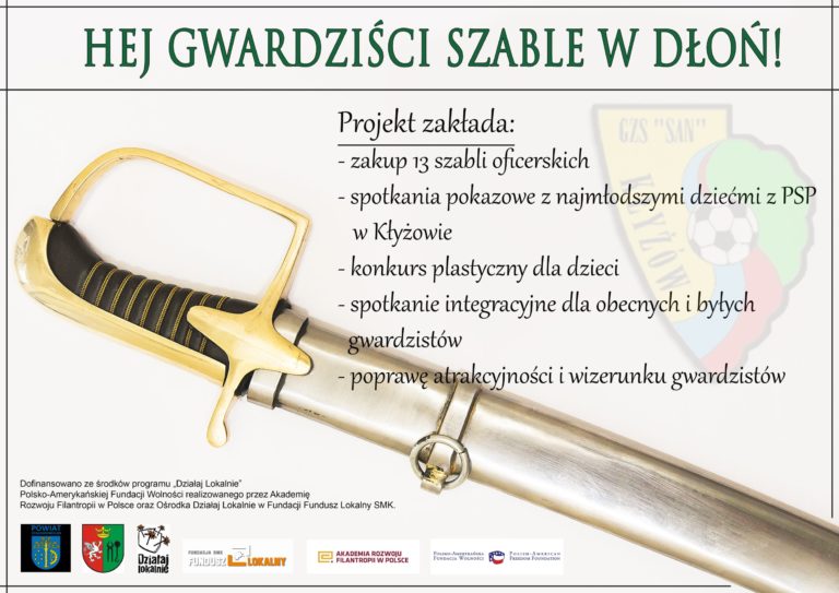 W ramach programu „Działaj Lokalnie” Polsko-Amerykańskiej Fundacji Wolność oraz Akademii Rozwoju Filantropii w Polsce, przy wsparciu Fundacji Fundusz Lokalny SMK oraz Gminnego Zespołu Sportowego „San”, w okresie od 1 lipca do 31 października 2020 roku, realizowany jest w miejscowości Kłyżów, projekt pt. „Hej Gwardziści, szable w dłoń!”.