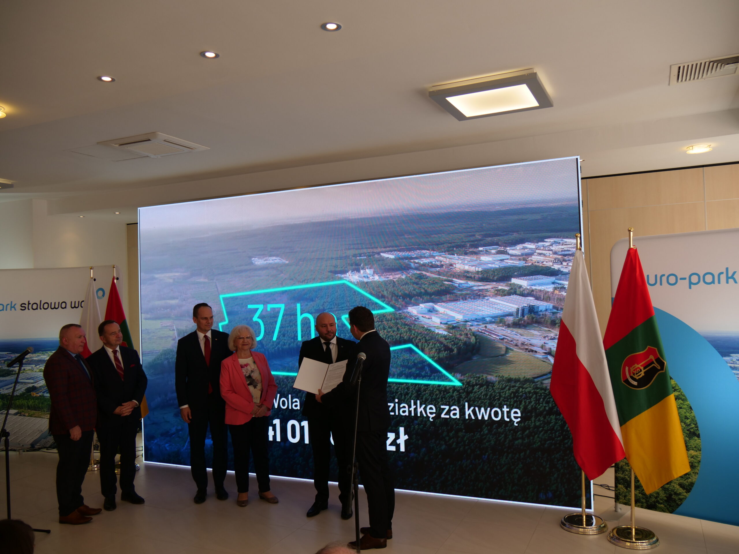 – Miasto Stalowa Wola pozyskało kolejnego inwestora, a jest nim Huta Stalowa Wola, która na przestrzeni 37 ha będzie realizowała rozbudowę, będzie wdrażała nowoczesne rozwiązania przemysłowe, badawcze – tak, aby duma naszego miasta – Huta Stalowa Wola – mogła się rozwiać dla rozwoju Stalowej Woli i dla bezpieczeństwa naszego Państwa – taką informację przekazał Prezydent Lucjusz Nadbereżny, po czym wręczył Prezesowi Zarządu Huty Stalowa Wola Janowi Szwedo decyzję o rozstrzygnięciu przetargu na zakup gruntów, który wygrała Huta Stalowa Wola. Przetarg opiewa na 41 mln złotych i dotyczy gruntów bezpośrednio przylegających do Huty Stalowa Wola.