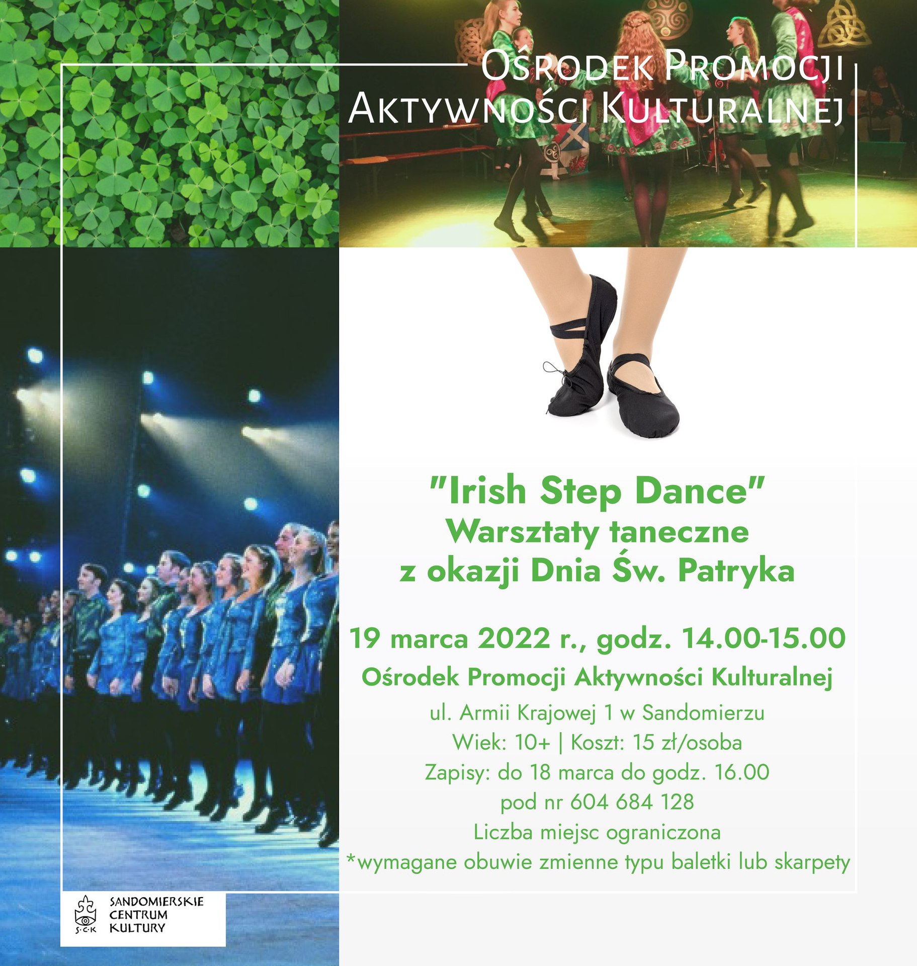 Irish Step Dance to jeden ze stylów tradycyjnego ludowego tańca irlandzkiego. Słynne na całym świecie muzyczne widowiska taneczne, jak „Lord of the Dance” Michaela Flatleya czy „Riverdance” pielęgnują te tradycje. Chcąc przybliżyć Państwu specyfikę tego tańca serdecznie zapraszamy na warsztaty pn. „Irish Step Dance” zorganizowane w ramach obchodów Dnia Św. Patryka!