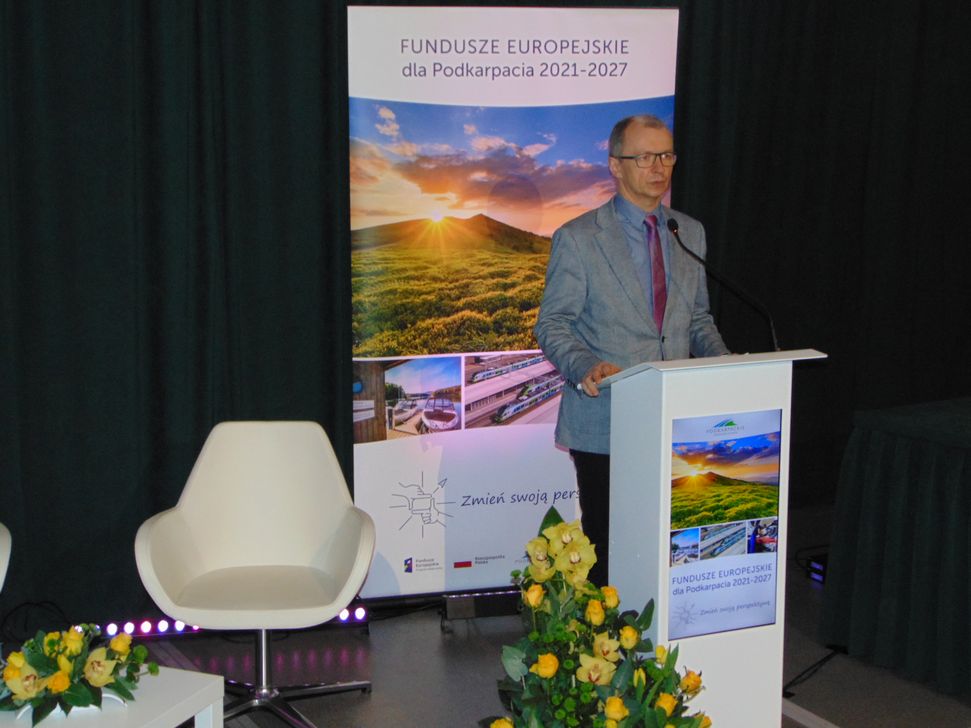 O aspektach przygotowania Funduszy Europejskich dla Podkarpacia 2021-2027 opowiedział profesor Jacek Szlachta z Kolegium Ekonomiczno-Społecznego Szkoły Głównej Handlowej w Warszawie, zaś kluczowy dla tego spotkania wykład noszący tytuł „Fundusze Europejskie dla Podkarpacia 2021-2027 – prezentacja programu regionalnego” wygłosił Wojciech Magnowski Dyrektor Departamentu Zarządzania Regionalnym Programem Operacyjnym w Urzędzie Marszałkowskim Województwa Podkarpackiego.