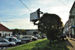 Od kilku dni na terenie miasta trwają jesienne prace pielęgnacyjne. Wykonują je pracownicy Przedsiębiorstwa Gospodarki Komunalnej i Mieszkaniowej w Staszowie w ramach realizacji umowy na „Bieżące utrzymanie w 2020 roku terenów zielonych w gminie Staszów”.