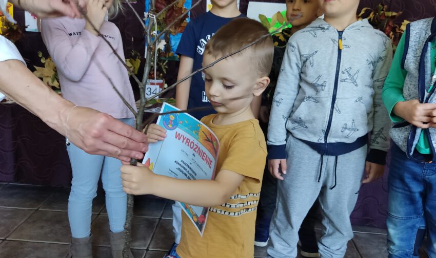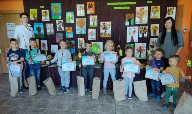 Spośród wielu  prac komisja konkursowa wyróżniła 10, w tym: 5 prac 3,4 latków oraz 5 prac 5,6 latków, nagradzając dyplomem i sadzonką drzewka owocowego.