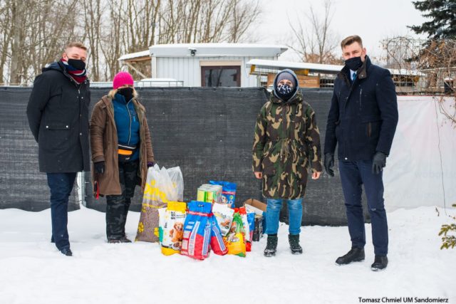 Urzędnicy sandomierskiego magistratu dokonali zbiórki karmy dla „Przytuliska na Wiśniowej”. Marcin Marzec burmistrz Sandomierza oraz Piotr Wójtowicz naczelnik Wydziału Rozwoju, Promocji i Inwestycji w imieniu pracowników Urzędu Miejskiego przekazali paczki karmy dla psów. Zima do trudny czas dla zwierząt mieszkających w schroniskach. Karma zapewni zwierzętom dodatkowe kalorie, które pomogą przetrwać ten okres.