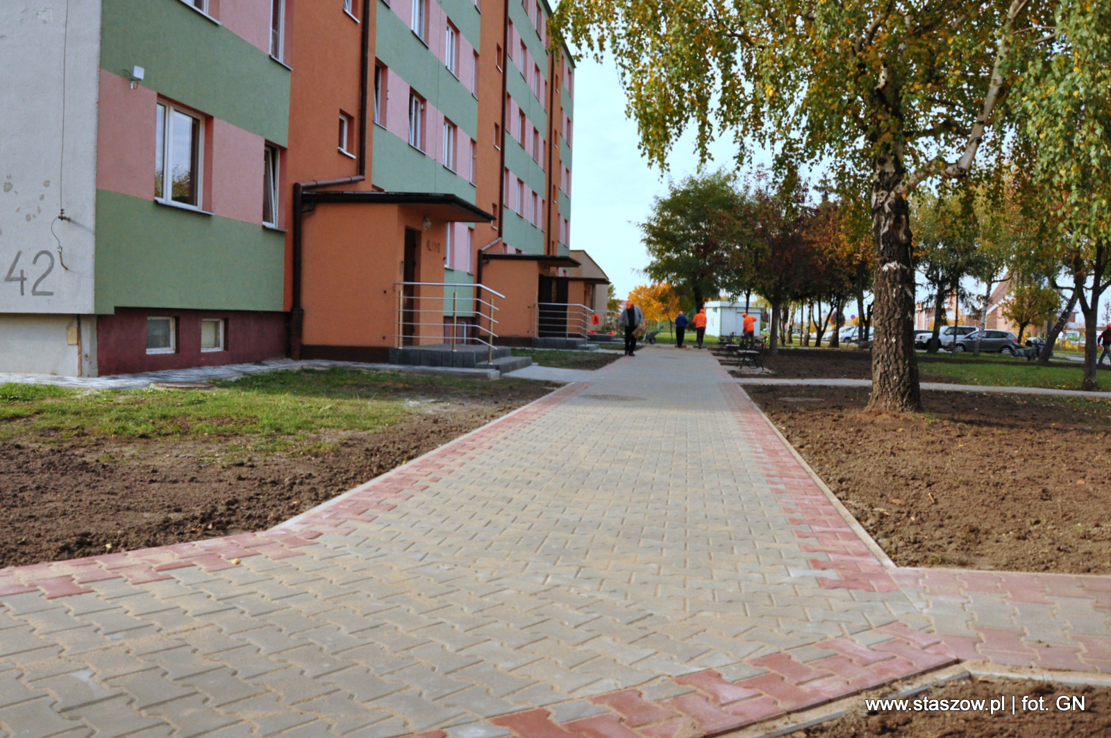 Przy bloku na ul. Mickiewicza 42 w Staszowie zgodnie z planem zakończono budowę chodnika. W ramach przeprowadzonych prac ułożono chodnik z betonowej kostki brukowej o powierzchni 144,6 m2, wykonano utwardzenia pod ławkami z kostki oraz posiano świeżą trawę na odpowiednio przygotowanym terenie. Koszt inwestycji to 31 tys. złotych brutto.
