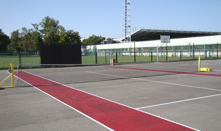 Z kolei przy ulicy Solskiego oddane zostały do użytku dwa korty tenisowe (ze ścianką treningową) i boisko do koszykówki o nawierzchni asfaltowej oraz dwa boiska do plażowej siatkówki. Wokół kortów i boisk zainstalowano piłkochwyty.