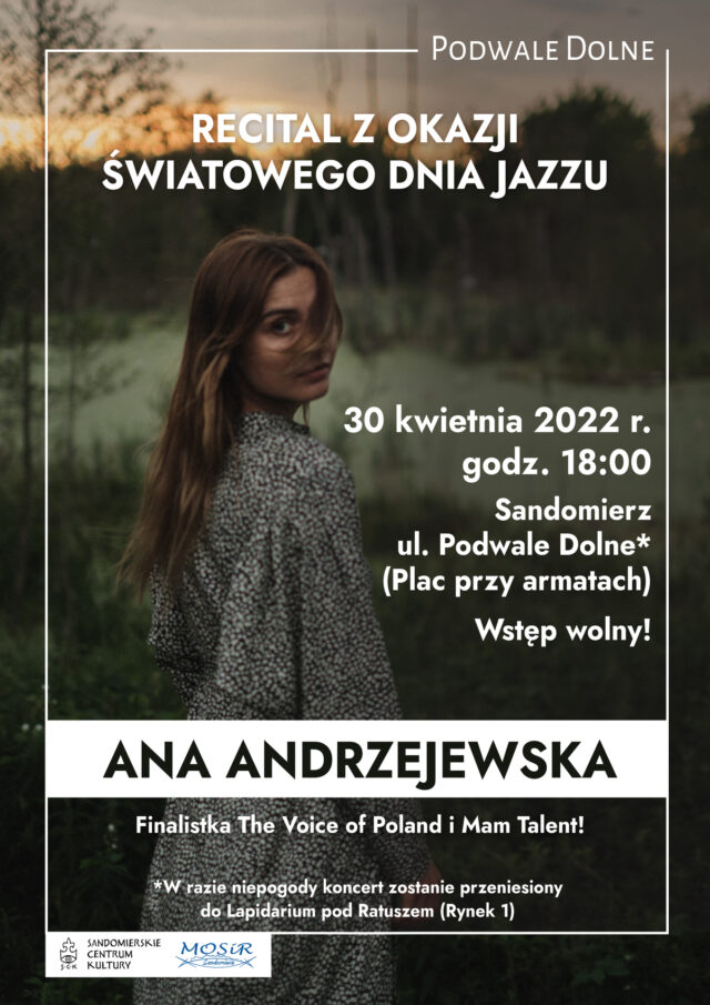 Wystąpi ANA ANDRZEJEWSKA, finalistka The Voice of Poland i Mam Talent. Tego wieczoru będzie można usłyszeć zarówno znane i lubiane standardy jazzowe, jak i autorskie utwory artystki.