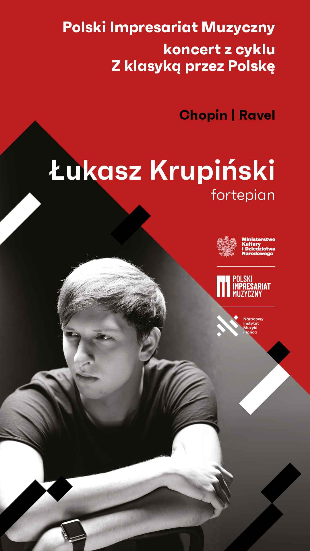 Na scenie Staszowskiego Ośrodka Kultury zagra Łukasz Krupiński. Wybitny polski pianista mieszkający w Londynie, półfinalista Konkursu Chopinowskiego. Występował m.in. w Carnegie Hall/Stern Auditorium w Nowym Jorku, Cadogan Hall, St. Martin in the Fields Royal Albert Hall w Londynie oraz w Filharmonii Narodowej w Warszawie. Koncertował z Jerusalem Symphony Orchestra, The Chicago Philharmonic,The Orchestra of the America, Sinfonią Varsovią i Santander Orchestra. 17 października 2021 wystąpił w Wigmore Hall w Londynie podczas Uroczystej Gali 50-lecia Chopin Society UK w obecności JKW księżniczki Alexandry oraz Jego Królewskiej Wysokości Księcia Kentu Edwarda. Łukasz Krupiński jest Artystą Steinwaya i finalistą UK Piano Open, zdobywcą Grand Prix w San Marino.