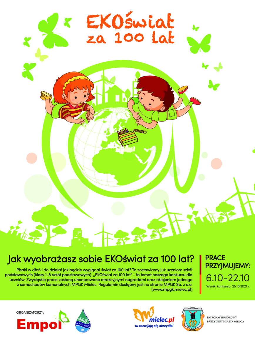 Uczestnicy konkursu mieli przedstawić, jak ich zdaniem będzie wyglądać świat za 100 lat, jeżeli ludzie będą wykorzystywać przyjazne środowisku rozwiązania. Zainteresowanie konkursem było bardzo duże – wpłynęło aż 269 prac! Wszystkie prace, które wpłynęły były piękne i pomysłowe. Docenić należy zaangażowanie i trud jakie dzieci włożyły, aby wykonać prace. Zwycięzcy poszczególnych kategorii w nagrodę otrzymali rowery, a ich pracę będą umieszczone na dwóch pojazdach MPGK.