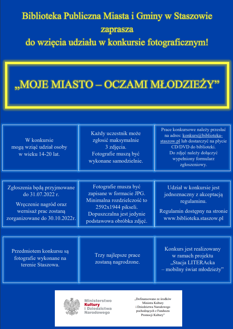 Biblioteka Publiczna Miasta i Gminy w Staszowie zaprasza do wzięcia udziału w konkursie fotograficznym: „Moje miasto – oczami młodzieży”.