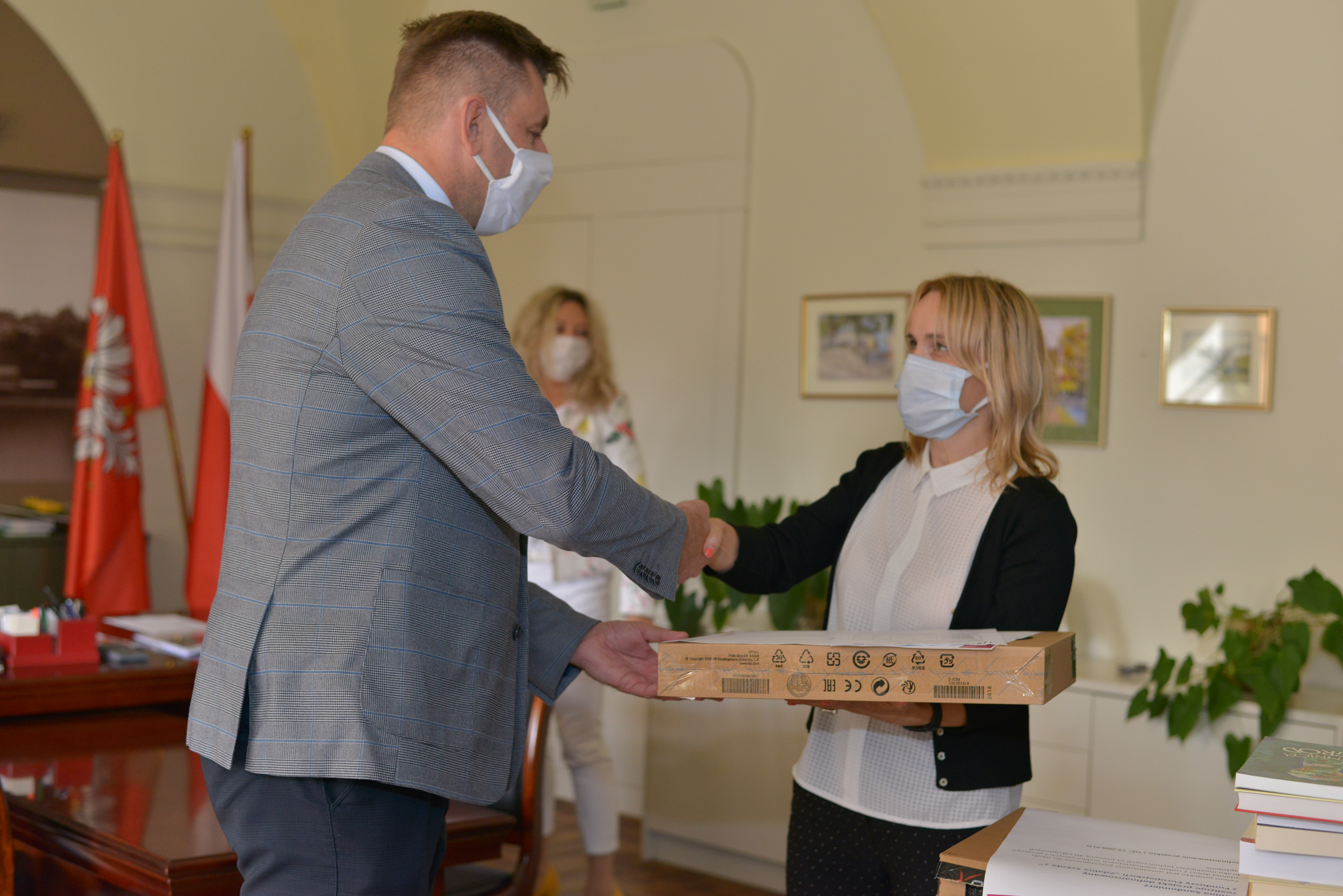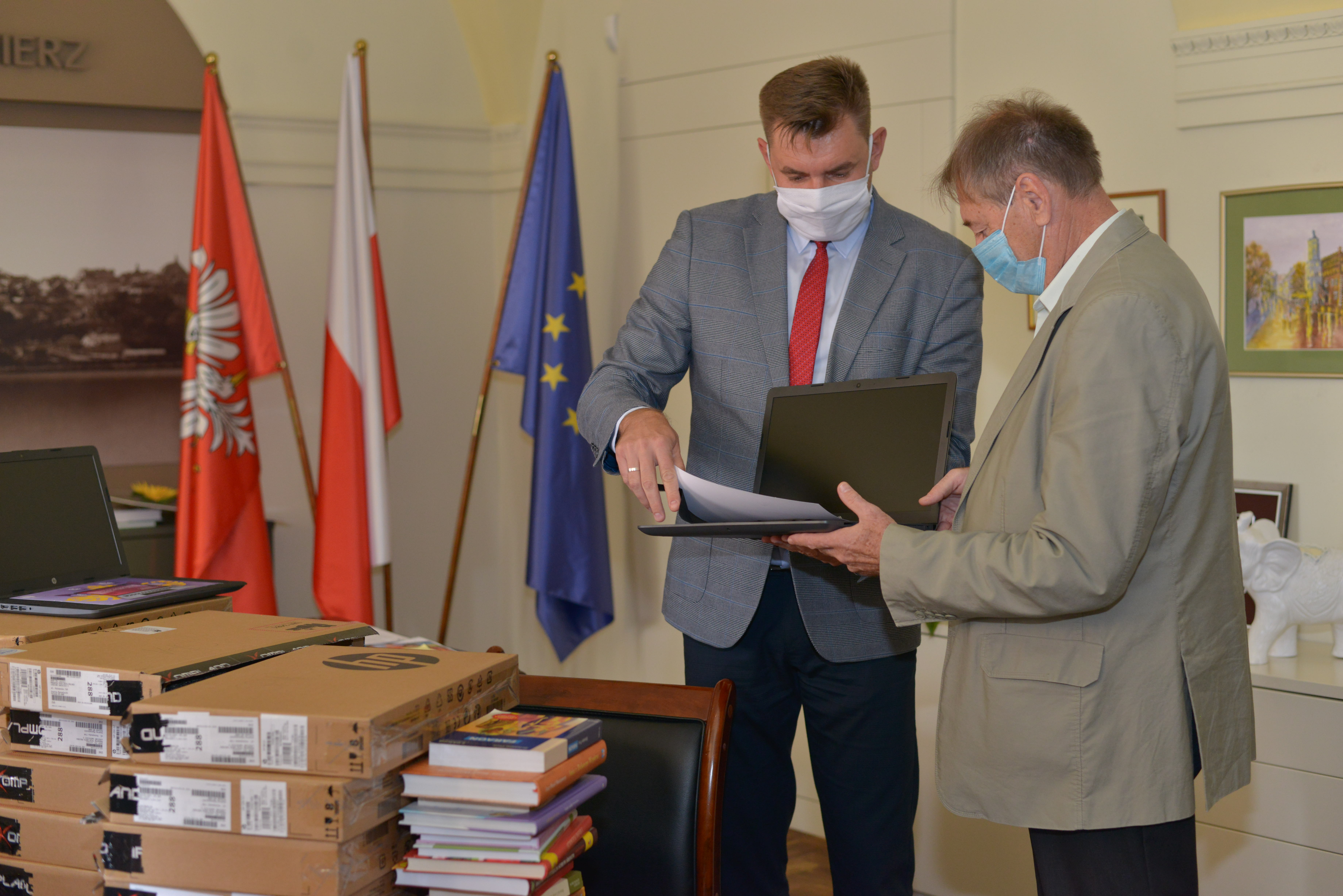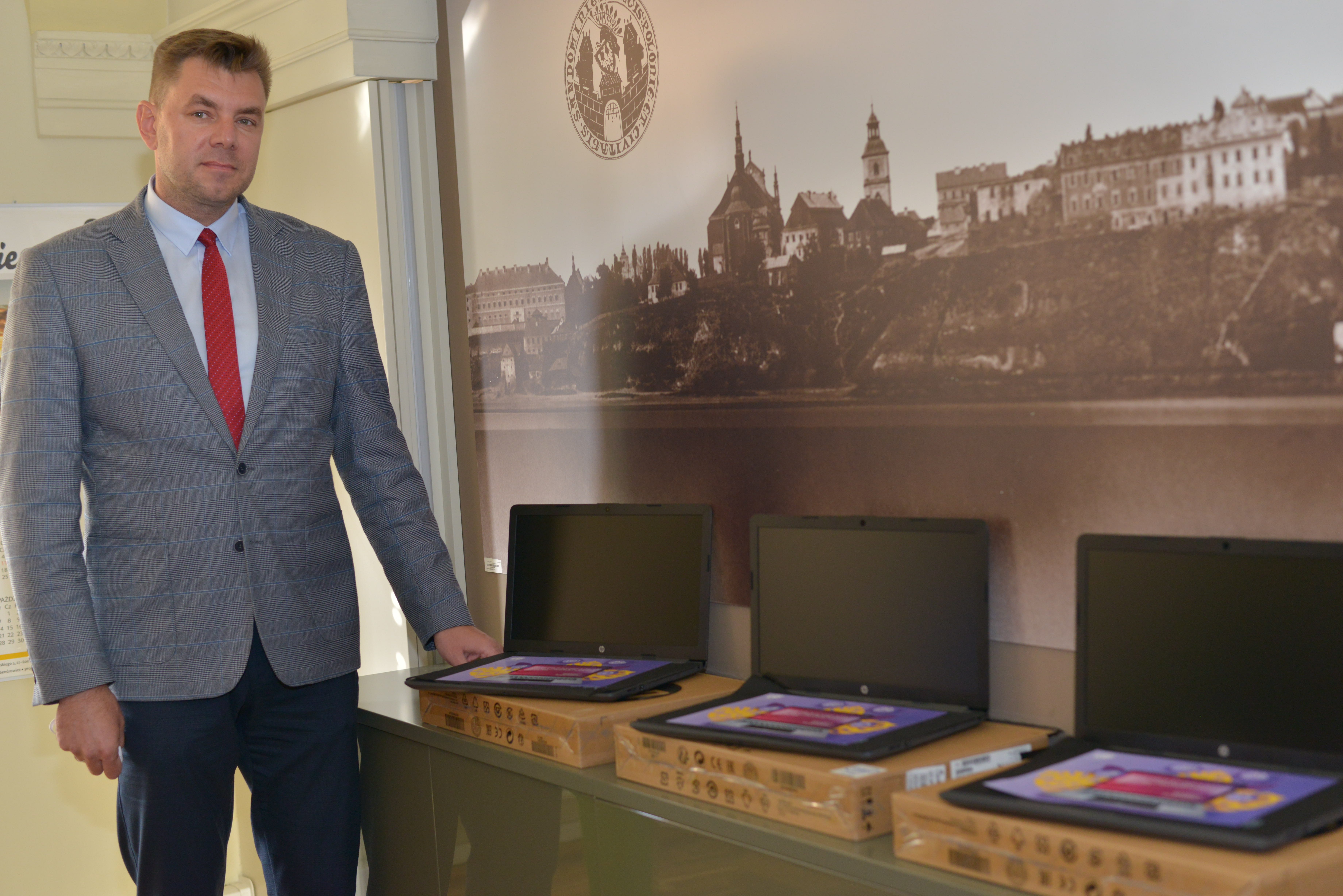 Kolejnych 30 laptopów trafiło do sandomierskich szkół podstawowych. Oficjalnego przekazania na ręce dyrektorów Szkoły Podstawowej nr 1, Szkoły Podstawowej nr 2, Szkoły Podstawowej nr 3 i Szkoły Podstawowej nr 4 dokonał Marcin Marzec burmistrz Sandomierza, 07.10.2020 roku.