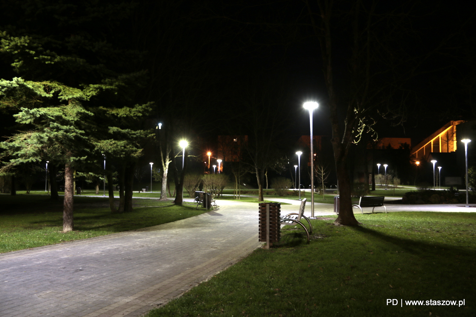 W Parku Miejskim im. Adama Bienia w Staszowie oraz na ulicy 11 Listopada pojawiło się już nowe, LEDowe oświetlenie. Trwa montaż kolejnych opraw oświetleniowych. Docelowo na staszowskich ulicach oraz obok boiska „Wembley” pojawi się ich 614 sztuk. To pierwszy etap modernizacji oświetlenia w Staszowie.