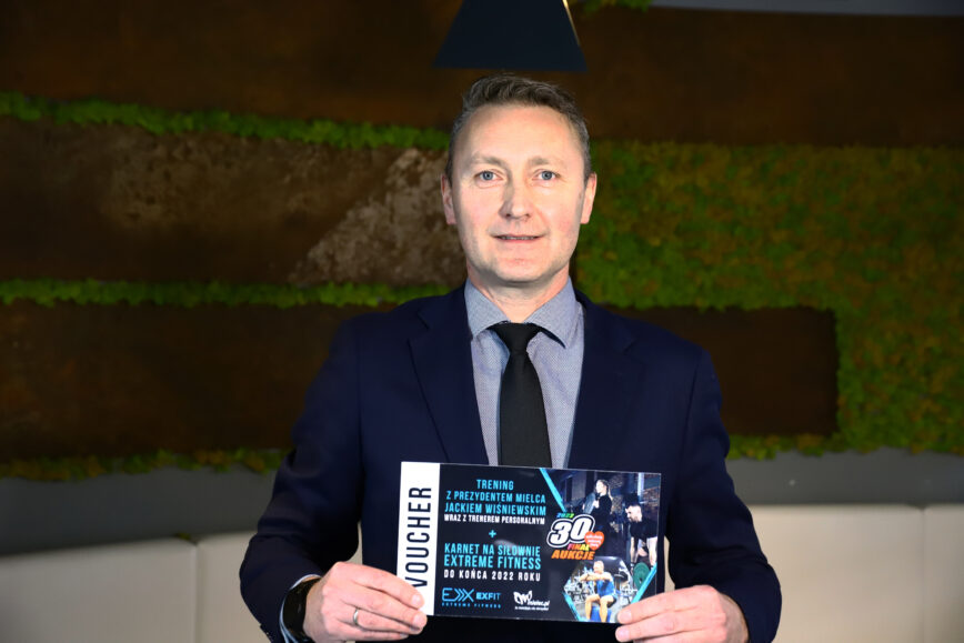 Pierwszym jest voucher na trening z Prezydentem pod fachowym okiem trenera personalnego ze znanej mieleckiej siłowni Extreme Fitness. Oprócz treningu voucher zawiera także ufundowany przez Extreme Fitness karnet na siłownię ważny do końca bieżącego roku.