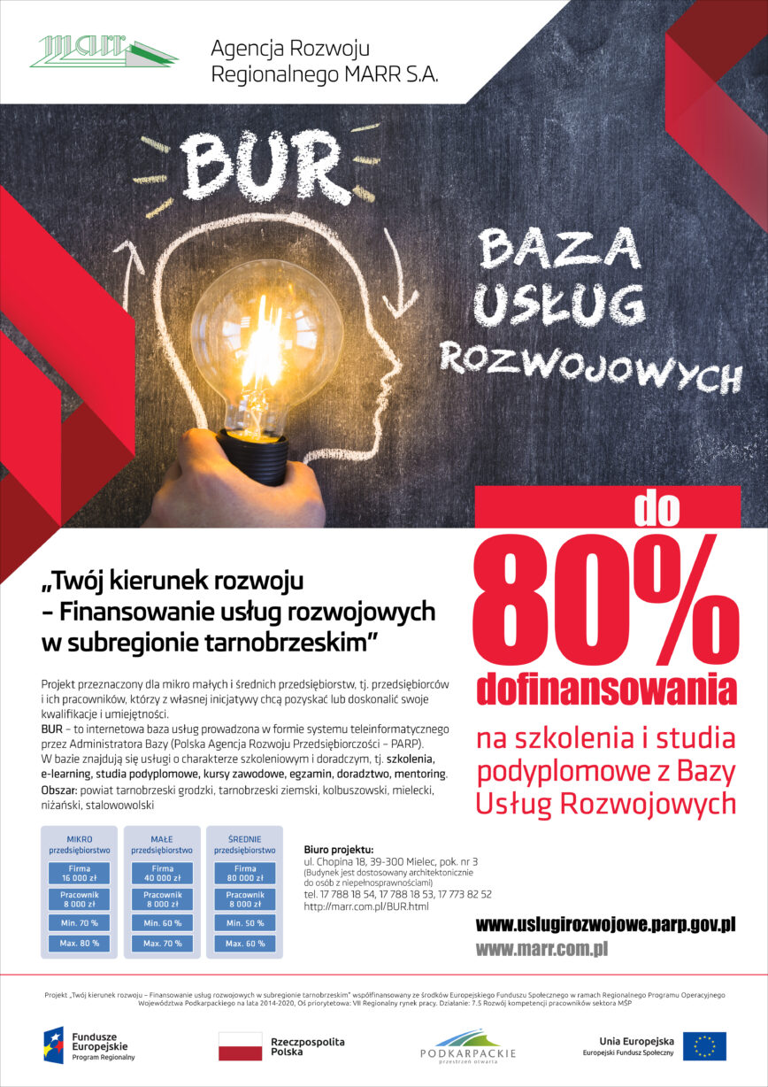 Więcej informacji o naborze na stronie http://www.marr.com.pl/BUR1.html – w zakładce PROJEKTY-BUR –Aktualności – Ogłoszenie o naborze nr 04/ST/2020