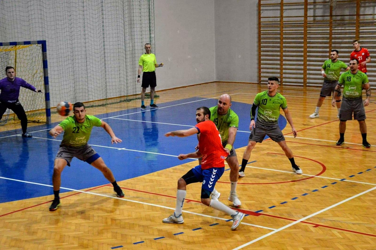 Po pierwszych remisowych 11 minutach nasza drużyna wzmocniła swoją grę obronną, co pozwoliło na przejęcie dominacji na parkiecie. W 19 minucie prowadzimy 9:5 i wydawało się, że w końcówce pierwszej połowy powiększymy prowadzenie. Niestety mimo wielu dogodnych sytuacji żadna z drużyn nie zdobyła bramki. Na przerwę schodzimy z przewagą czterech bramek, prowadząc 9:5. W drugiej odsłonie gra wyglądała bardzo podobnie do pierwszej części dzisiejszych zawodów. Jednak w 41 minucie goście doprowadzają do remisu 10:10 i gra zaczyna się od nowa. Co prawda w 58 minucie wychodzimy na dwubramkowe prowadzenie, lecz w końcówce nie potrafimy utrzymać przewagi i spotkanie kończy się remisem 18:18. Aby wyłonić zwycięzcę, potrzeba było rozegrać serię rzutów karnych, które lepiej wykonali nasi zawodnicy. Mimo zdobytych dwóch punktów żałujemy, że tak zakończyły się zawody, bo można było zdobyć pełną pulę punktową. Jednak zdobycie każdego punktu jest bardzo ważne i cenne dla nas. Za tydzień rozegramy wyjazdowe zawody z Padwą w Zamościu, gdzie postaramy się uzyskać dobry wynik.