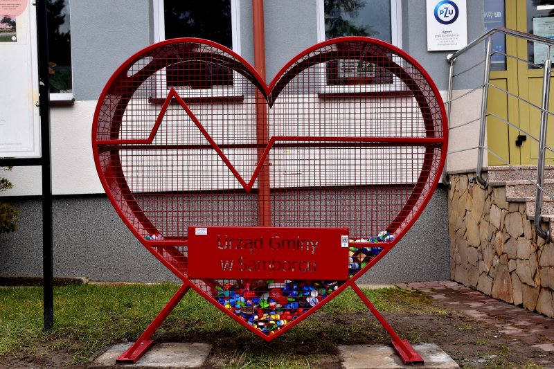 Przed Urzędem Gminy w Samborcu pojawiło się metalowe serce na nakrętki. Ideą tego serca jest pomoc najbardziej potrzebującym mieszkańcom.