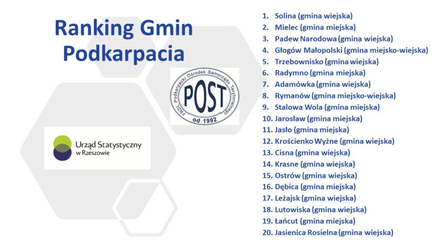 Nasze miasto zajęło 2. miejsce w Rankingu Gmin Podkarpacia 2020 roku. To najwyższa lokata w historii. Pięć lat temu mogliśmy cieszyć się z 3. miejsca, w tegorocznym rankingu pokonaliśmy ten wynik. Warto wspomnieć, że w rankingu wyprzedziła nas tylko Solina (gmina wiejska), na trzecim miejscu uplasowała się Padew Narodowa.