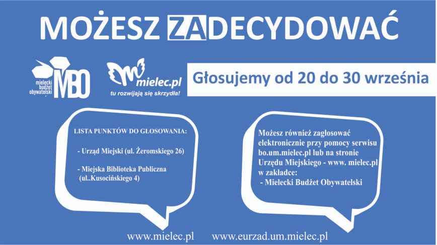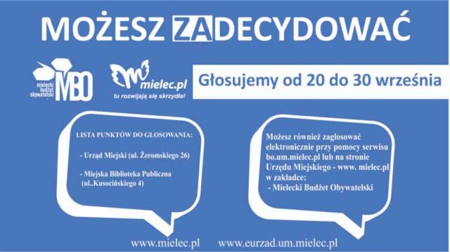 Zbliżamy się do głosowania w Mieleckim Budżecie Obywatelskim. Lista zatwierdzonych projektów, które zostaną dopuszczone do głosowania będzie znana w tym tygodniu! Poniżej podajemy 2 punkty w których będzie można oddać swój głos w formie papierowej. Są to: