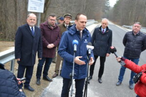 Podczas konferencji starosta zaznaczył również, że Powiat Stalowowolski jest jednym z nielicznych samorządów w Polsce, tak skutecznie pozyskującym wsparcie inwestycji drogowych przez Lasy Państwowe, w ramach wspomagania administracji samorządowej ze środków związanych z funduszem leśnym.