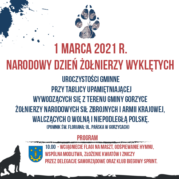 Uroczystości odbędą się przy tablicy upamiętniającej wywodzących się z terenu gminy Gorzyce żołnierzy Narodowych Sił Zbrojnych i Armii Krajowej walczących o wolną Polskę.