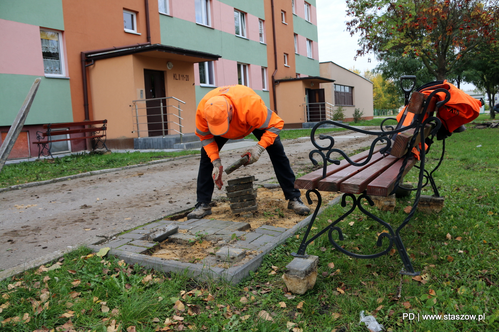 Prace budowlane trwają również przy ul. Mickiewicza 42. Zadaniem ekipy budowlanej jest między innymi utwardzenie terenu pod chodnik o pow. 144,6 m2 z betonowej kostki brukowej oraz ustawienie obrzeża. Nowy chodnik ma zostać wykonany do końca października.