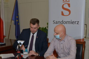 Podpisania umowy z wykonawcą dokonał Marcin Marzec burmistrz Sandomierza. W podpisaniu umowy uczestniczyli również: Elżbieta Sobolewska dyrektor Szkoły Podstawowej nr 2 oraz Mieczysław Dygas dyrektor Szkoły Podstawowej nr 4 w Sandomierzu.