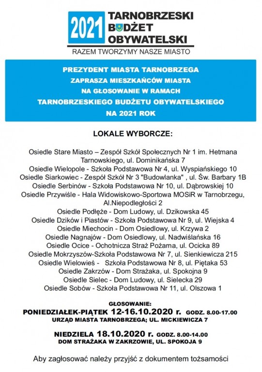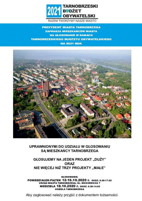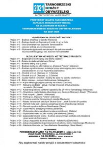 Zapraszamy do dokonywania wyboru projektów. Zwycięskie projekty zostaną wprowadzone do realizacji w budżecie miasta Tarnobrzega na 2021 rok.