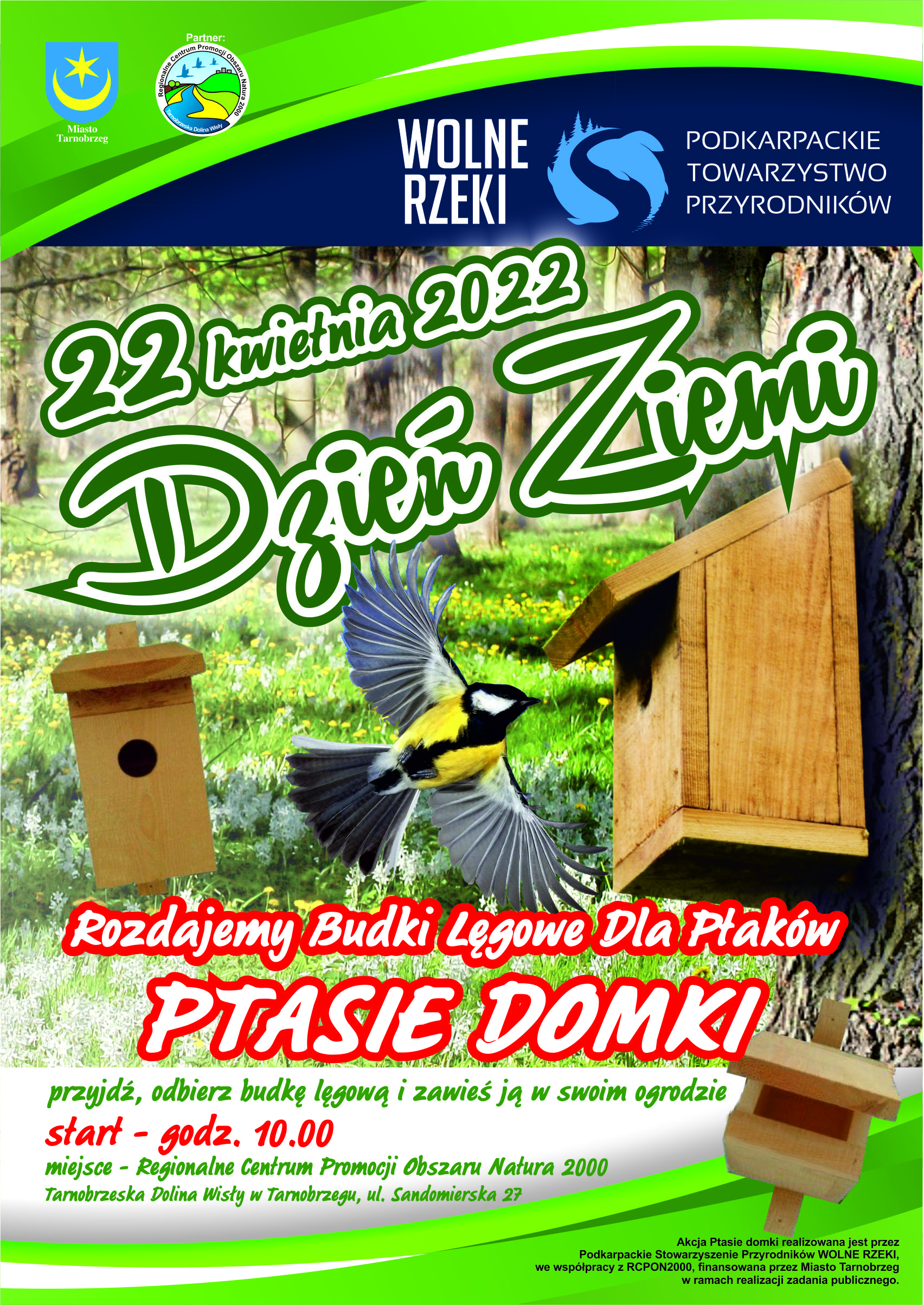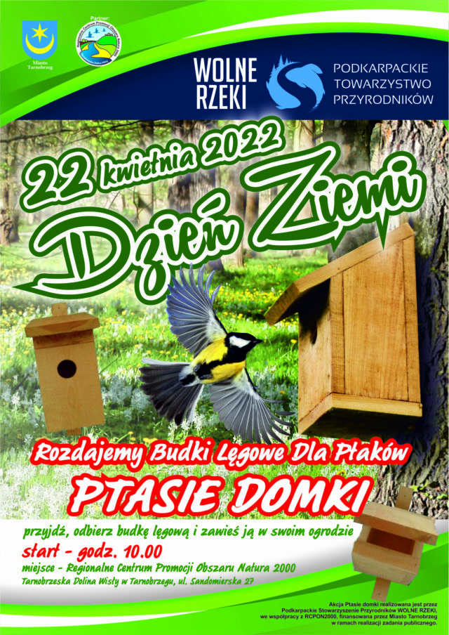 W piątek, 22 kwietnia o godzinie 10.00 Podkarpackie Towarzystwo Przyrodników Wolne Rzeki, zaprasza do obioru budek lęgowych w siedzibie Centrum Natura 2000. Tarnobrzeg, ul. Sandomierska 27. Budki zostały sfinansowane ze środków Miasta Tarnobrzega w ramach konkursu „Ekologia i ochrona dziedzictwa przyrodniczego”.