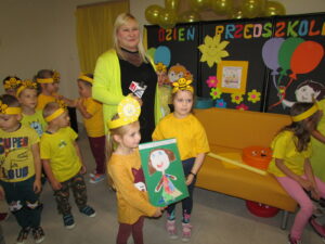emocjami w ramach realizacji projektu ,,Przedszkolak w krainie wielkich emocji”. Ze względu na czas pandemii przedszkolaki swój dzień świętowały wyjątkowo we własnych przedszkolach. Kulminacyjny był wtorek – 21 września 2021 r. To był uroczysty dzień z dominacją koloru żółtego kojarzonego z ciepłem, radością, pogodą ducha.